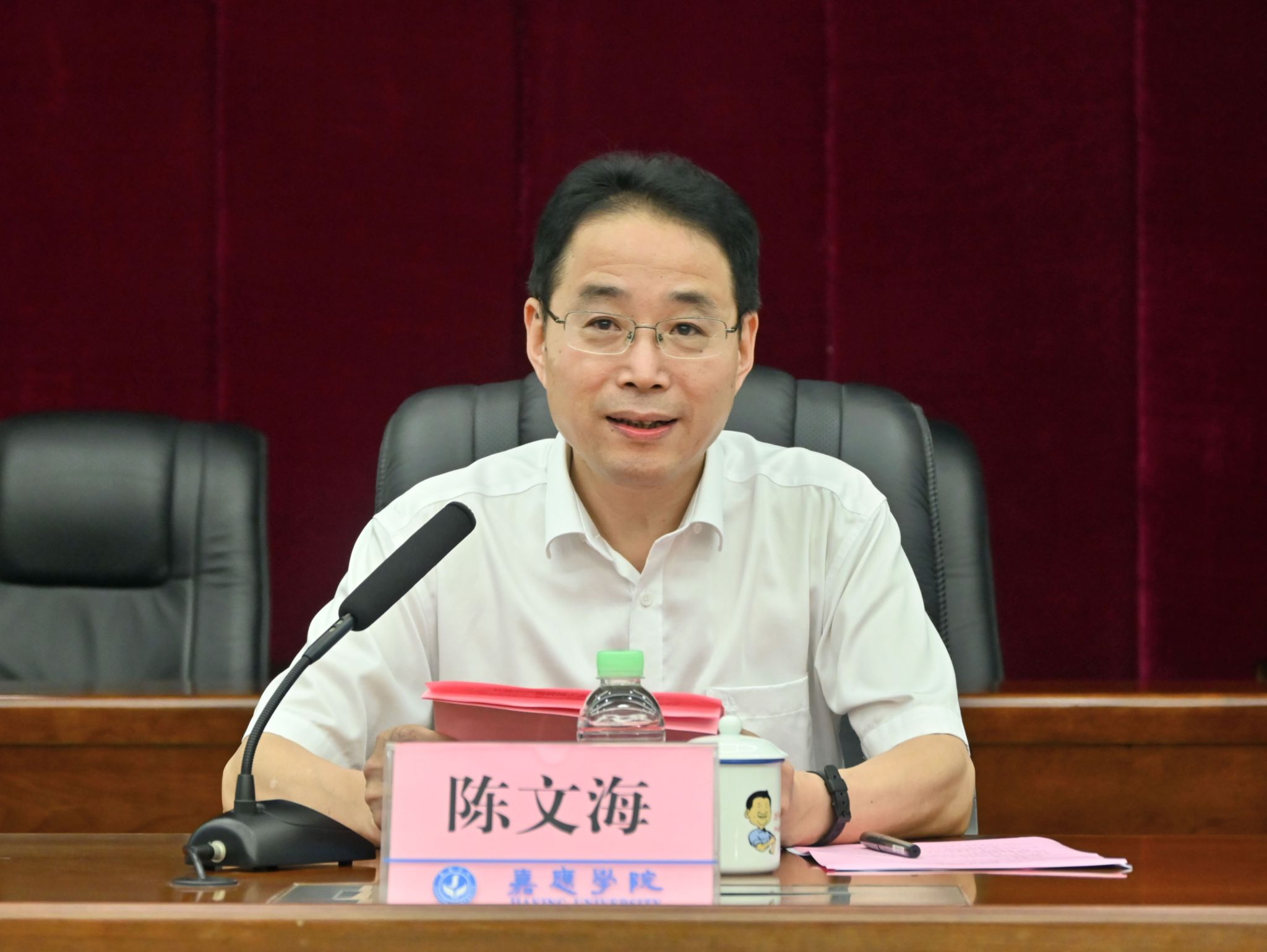 陈文海在讲话中指出,开展创新创业教育是学校落实立德树人根本任务的重要体现,要持续优化创新创业教育顶层设计,聚焦“五育”与创新创业教育融合,将创新创业教育融入应用型人才培养的全过程。他强调,一要健全课程与师资体系,加强专业课程与创新创业课程融会贯通,从多个维度构建创新创业教育师资体系;二要整合多元化优质资源,大力推进“政校行企”四方协同平台建设,打造创新创业教育共同体;三要推动科产教一体化,促进教师科研成果转变为优质教学资源,结合产业需求促进协同创新,推动创新成果到创业项目的转化;四要锚定备赛参赛目标,广泛深入挖掘各类参赛项目,精益求精做好“金种子”项目培育,努力在新一届中国国际大学生创新大赛中取得新突破,充分彰显学校办学特色和人才培养成果。