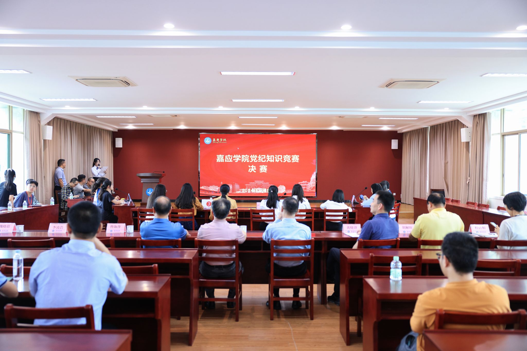为深入学习贯彻修订后的《中国共产党纪律处分条例》,引导学校广大党员干部学纪、知纪、明纪、守纪,6月5日下午,我校在何侨生大楼526室举办了2024年党纪知识竞赛决赛。学校纪委书记、监察专员苏文记参加并为获奖队伍颁奖,党委办校长办、组织部、宣传部、纪检监察室、团委等职能部门主要负责人,学校党纪工作专班成员,晋级决赛的机关党委等八个二级党组织负责人现场观摩了比赛。