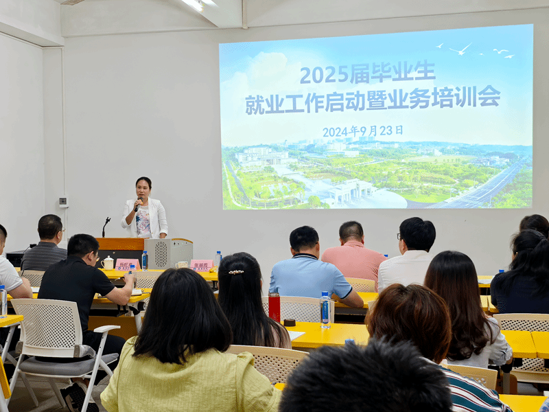 9月23日下午,我校在黄桂清学生活动中心405室召开2025届毕业生就业工作启动暨业务培训会议。副校长张丽霞,学生工作部、学生就业指导与服务中心负责人,各二级学院党委(党总支)副书记,2025届就业辅导员及就业指导课程备课组成员共50多人参加了会议。