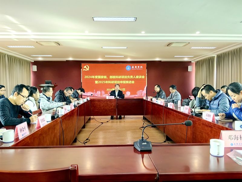 12月27日上午,我校在何侨生大楼526会议室召开获得2024年度国家级、部级项目负责人座谈会暨2025年科研项目申报推进会。会议由副校长廖志成主持并讲话。科研处和各二级教学科研单位分管科研工作负责人、获得国家级和部级科研项目负责人,共50多人参加会议。