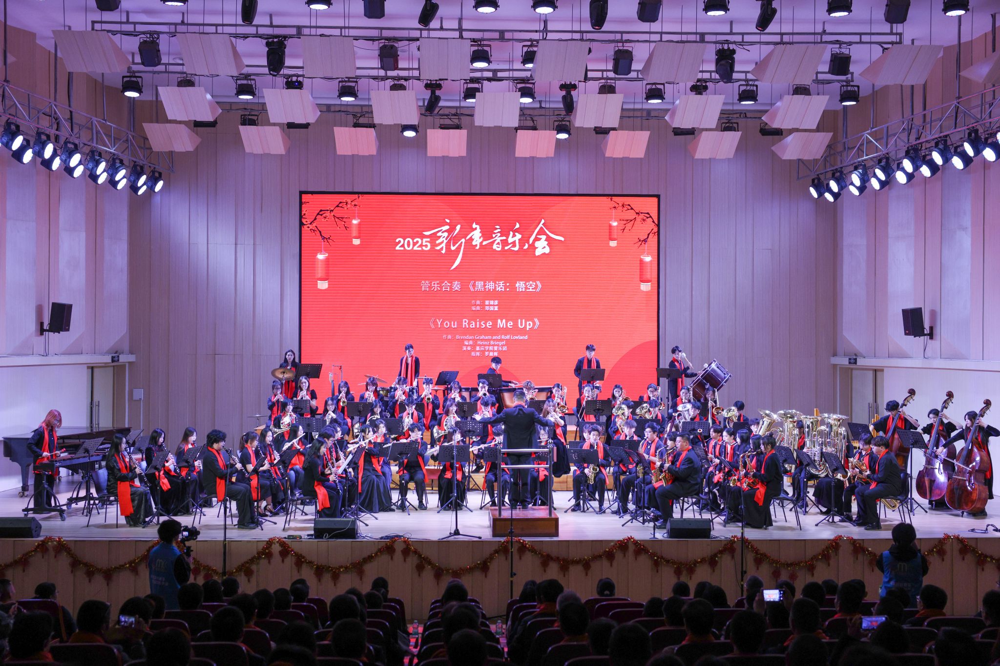 新年音乐会以交响管乐《黑神话:悟空》拉开序幕。民族管弦乐《丝绸之路》融合了多种音乐元素,展现了丝绸之路的广袤辽阔和深厚的人文韵味。歌曲《阳光路上》表达了各族人民对历史深情的回顾和对未来繁荣富强的期待。独唱歌曲《忆秦娥·恒山月》,意境开阔、内涵高妙。《You Raise Me Up》《上春山》《蒙风》等音乐作品都给观众带来美的享受,演奏期间观众的掌声经久不息。