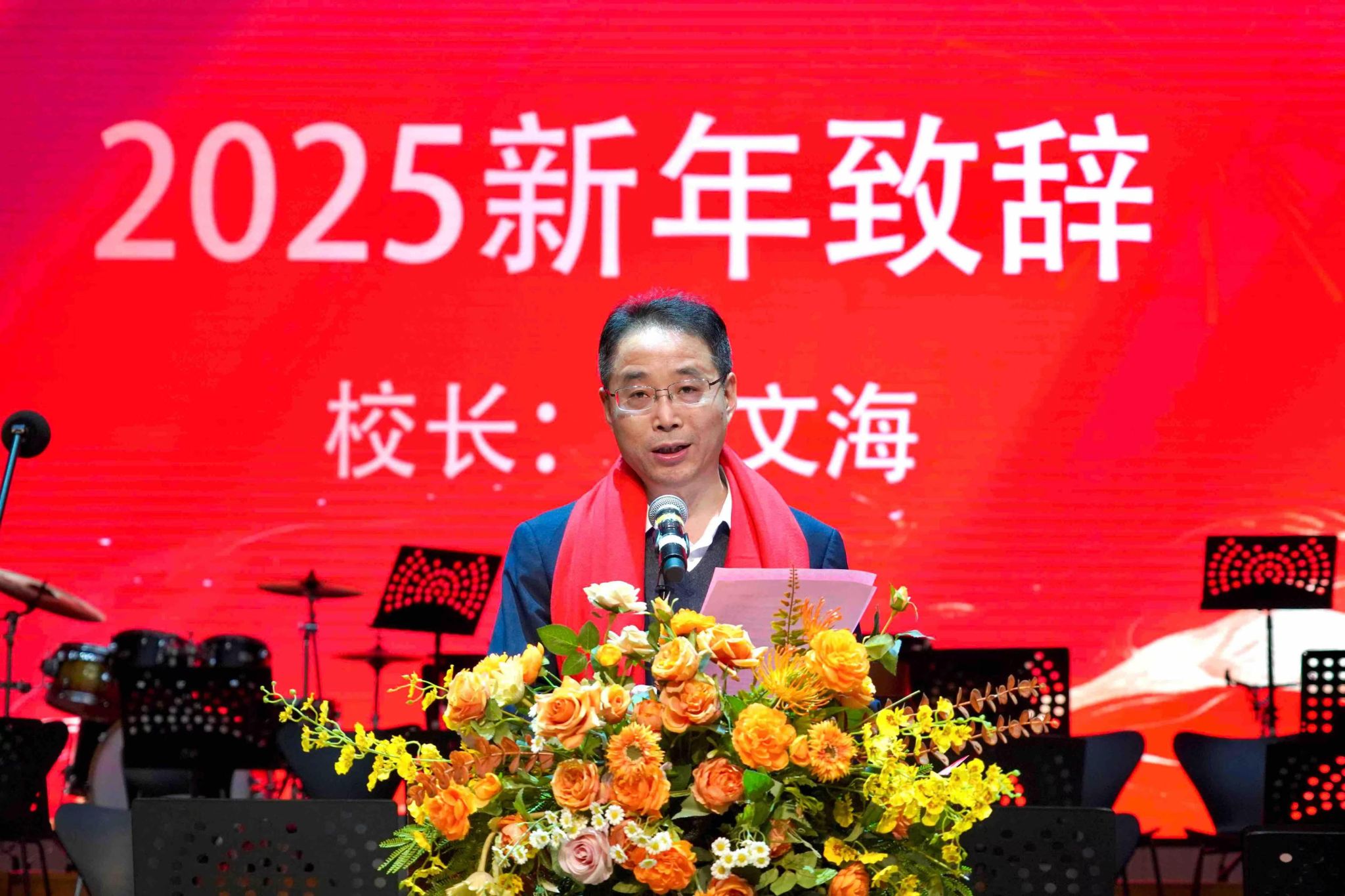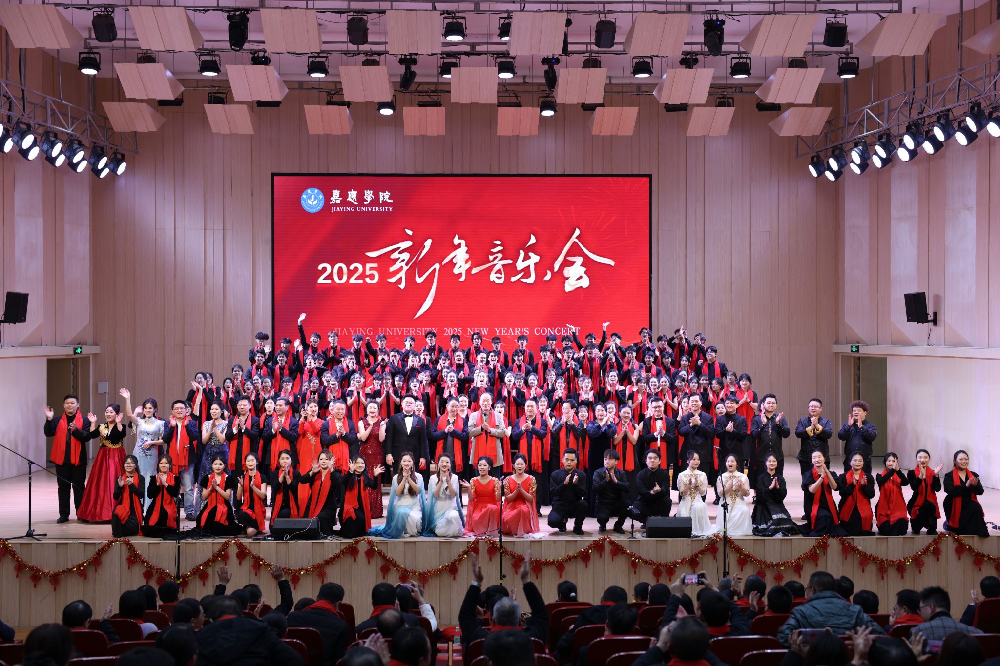 2024年12月31日晚,我校在江北校区音乐与舞蹈学院音乐厅举行2025年新年音乐会。学校党委副书记、校长陈文海,副校长罗嘉文、袁铎、廖志成、陈建存,中山大学帮扶工作队队长兰宇,以及全体中层干部、师生代表、退休人员代表参加音乐会,共迎新年。