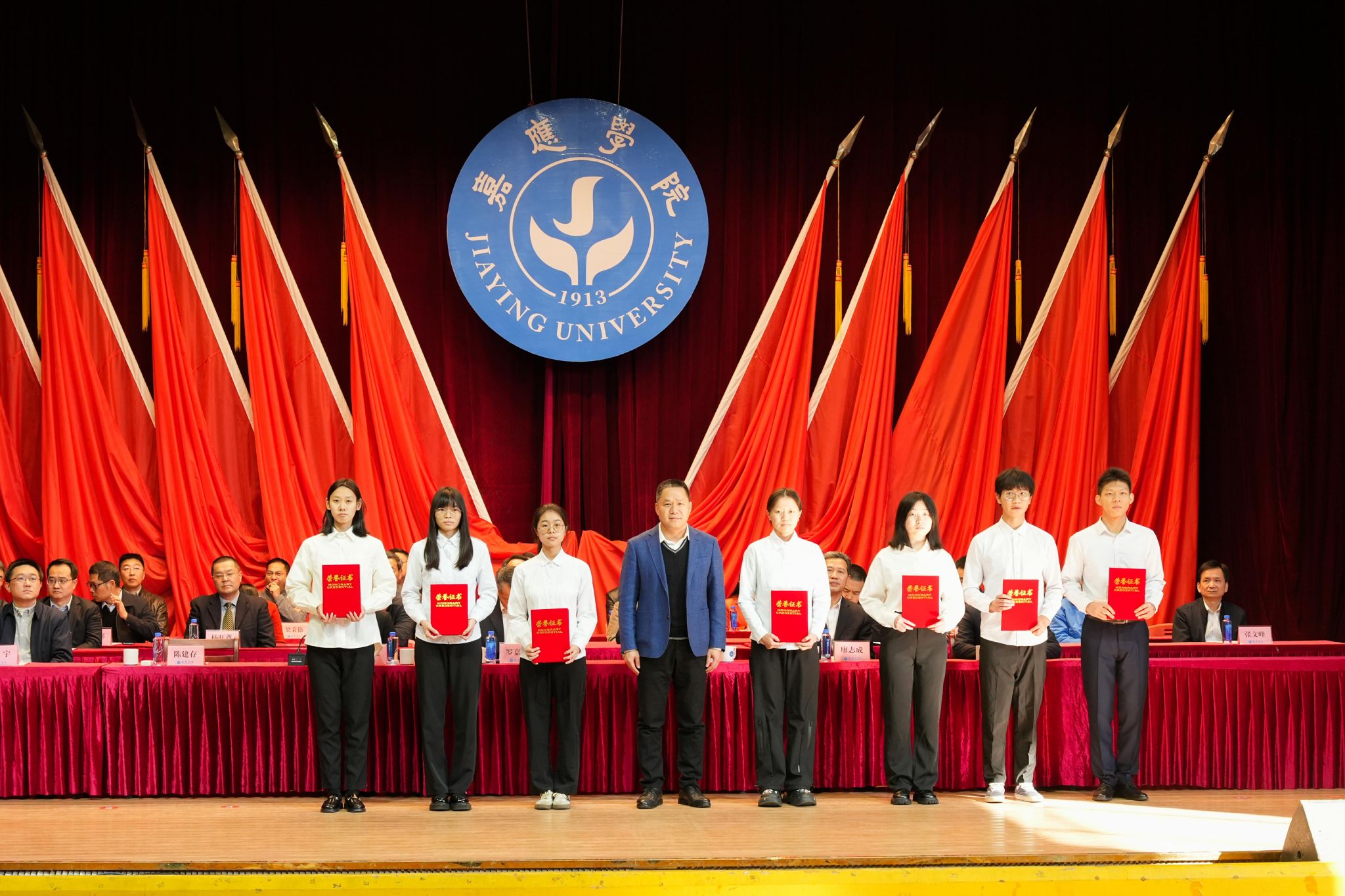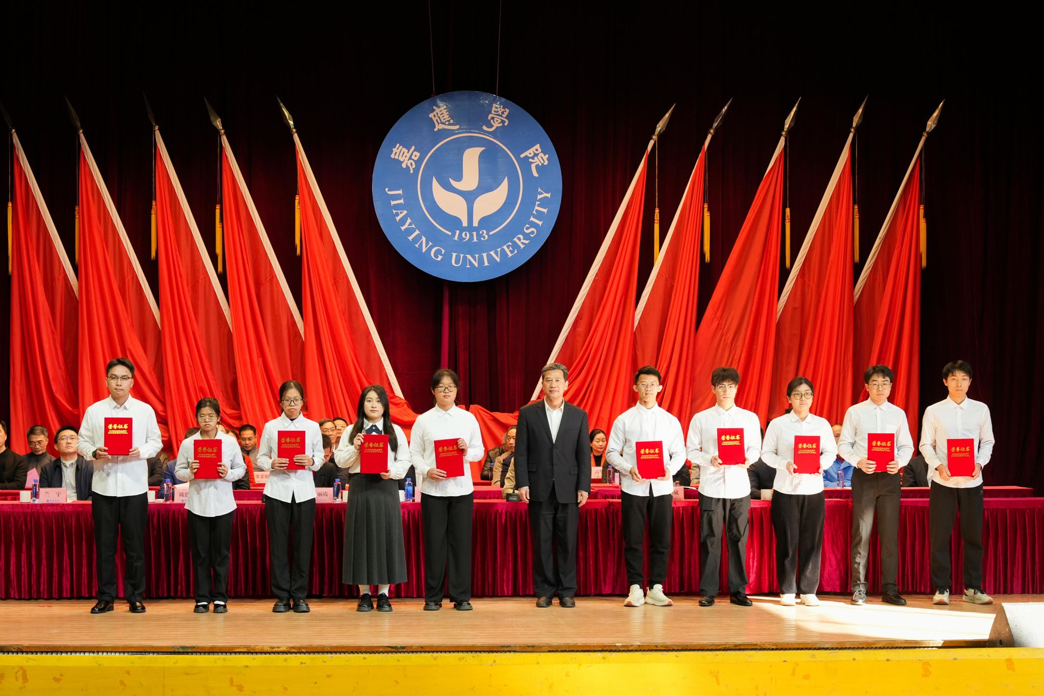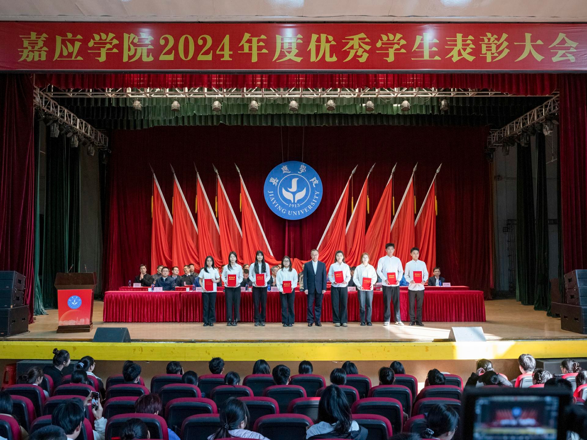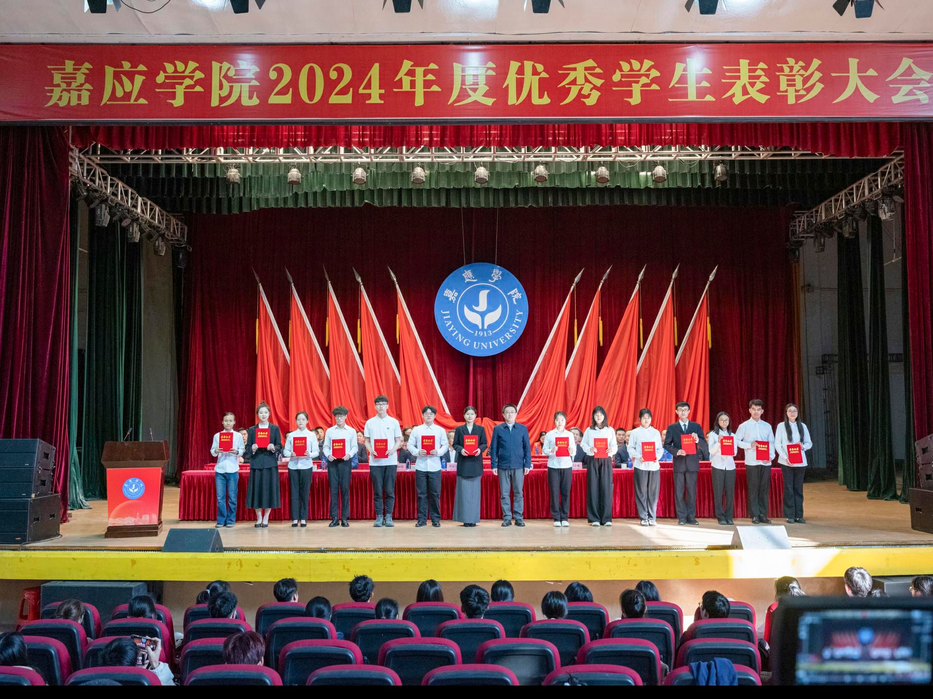 罗嘉文在讲话中对受到表彰的同学表示热烈祝贺,向辛勤耕耘的教师表示衷心感谢。他指出,学校坚持和加强党对学校工作的全面领导,落实立德树人根本任务,扎实推动学校高质量发展。过去的一年,学校成功获批硕士学位授予单位,办学层次实现新跃升。这一突破更是为同学们搭建了更为广阔的成长舞台,同学们也与学校事业发展同向同行,在各条赛道上奋勇争先,取得诸多亮眼成绩。同时,他对同学们提出三点希望:一是要勇立凌云之志,做胸怀天下、志存高远的嘉园人;二是要勇怀奋斗热忱,做根基扎实、素养全面的嘉园人;三是要勇于担当作为,做齐心协力、砥砺前行的嘉园人。