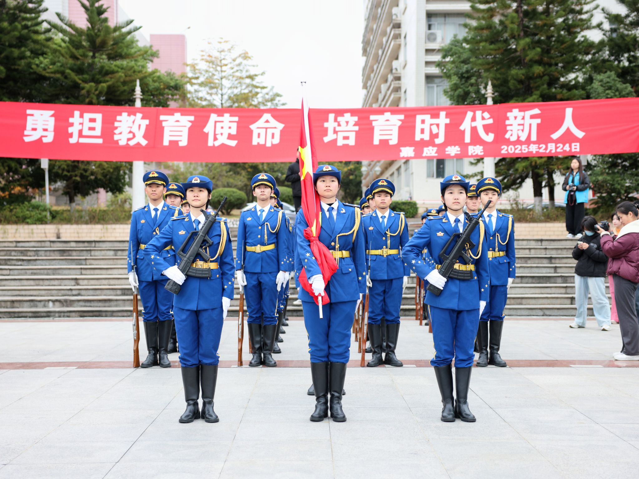 此次升旗仪式不仅是新学期的开篇仪式,更是对师生爱国主义精神的一次生动洗礼。梦虽遥,追则能达;愿虽艰,持则可圆。中国式现代化的新征程上,每一个人都是主角,每一份付出都弥足珍贵,每一束光芒都熠熠生辉。在这充满机遇和挑战的一年里,我校全体师生坚定与党同心、与国同行、与时代共奋进的信念,携手共进,砥砺前行,以更加饱满的热情、更加昂扬的斗志、更加务实的作风,投入到工作和学习中,共同推动学校高质量发展。