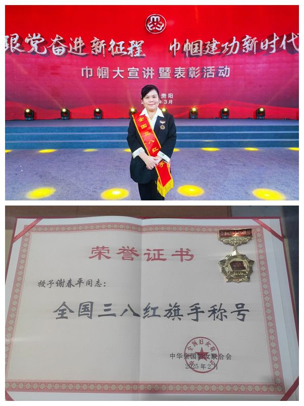 近日,我校校友谢春平因在支教事业中的突出贡献,被全国妇联授予2024年度“全国三八红旗手”称号,并于3月6日在贵州省的表彰活动现场接受荣誉。此前,她已获评遵义市、贵州省“三八红旗手”等多项荣誉称号。