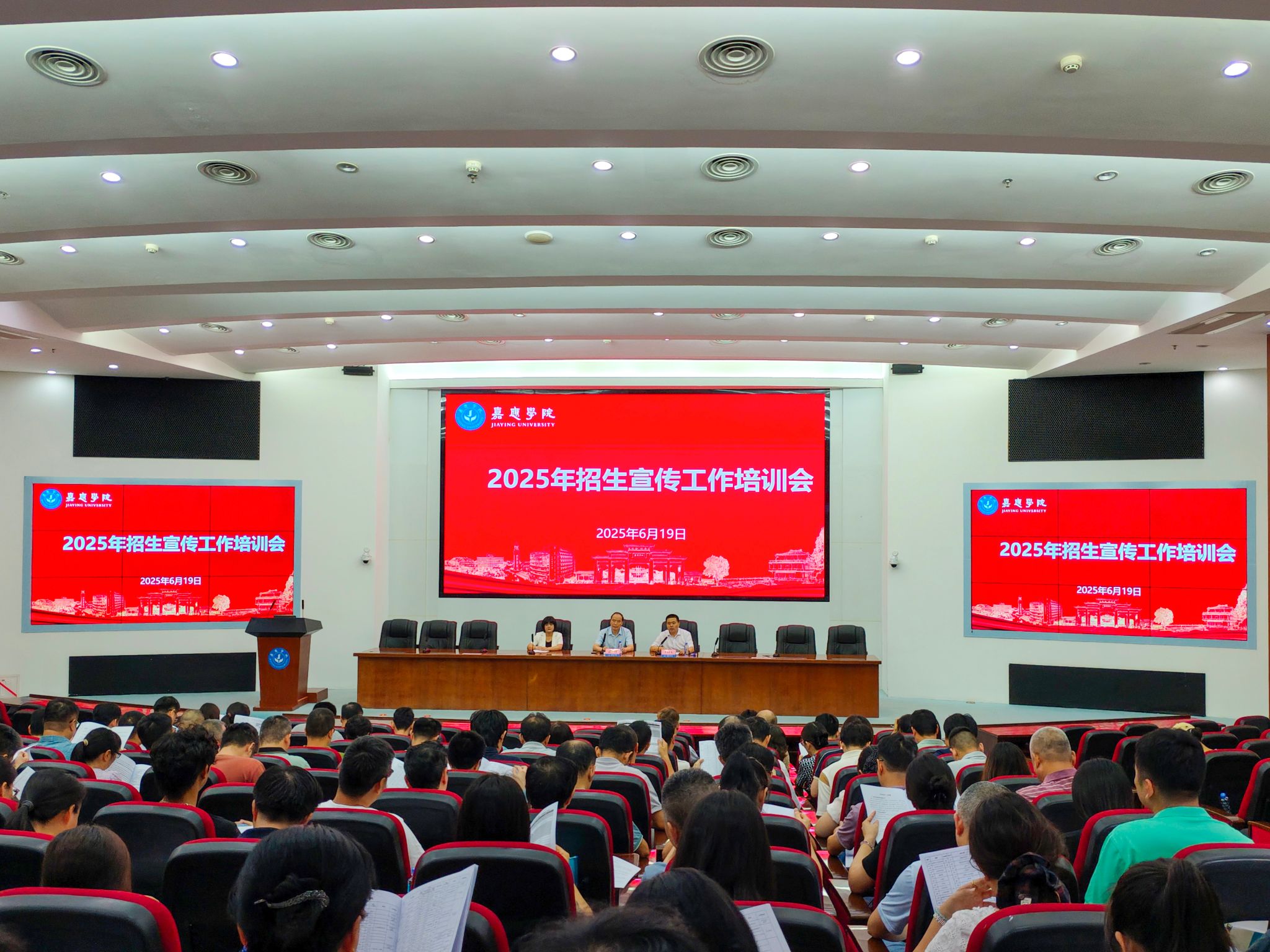 近日,我校在国际会议中心召开2025年招生宣传工作培训会。副校长袁铎,各二级学院招生宣传工作小组成员、招生咨询工作人员、教务处相关人员等近200人参加会议。