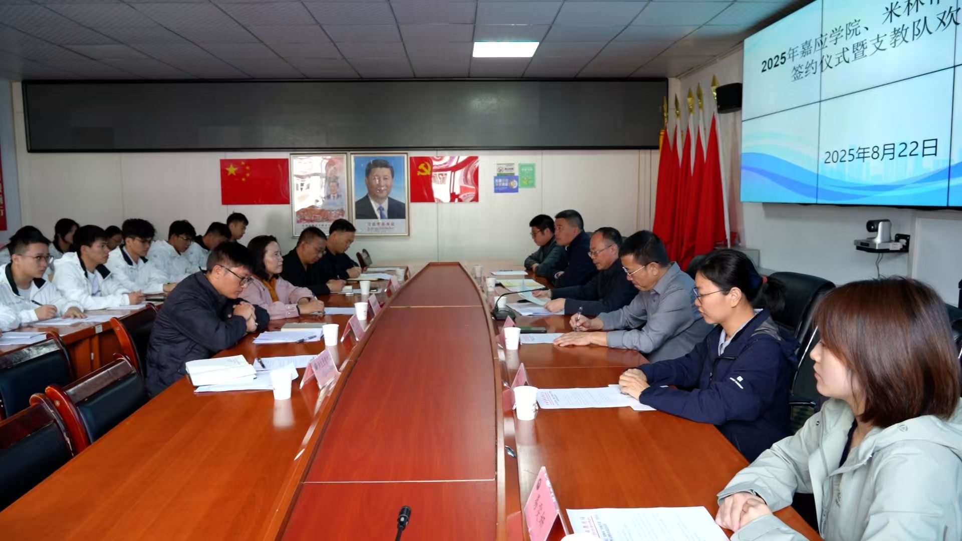 8月22日上午,嘉应学院与西藏自治区米林市“校地共建”签约仪式暨第七批支教队欢迎会在米林市教育局顺利举行。我校纪委书记苏文记,米林市人民政府副市长李凤芝,米林市教育局党组书记、局长姜涛,以及我校老师、支教大学生团队等参加了会议。双方代表共同签署了校地共建协议。