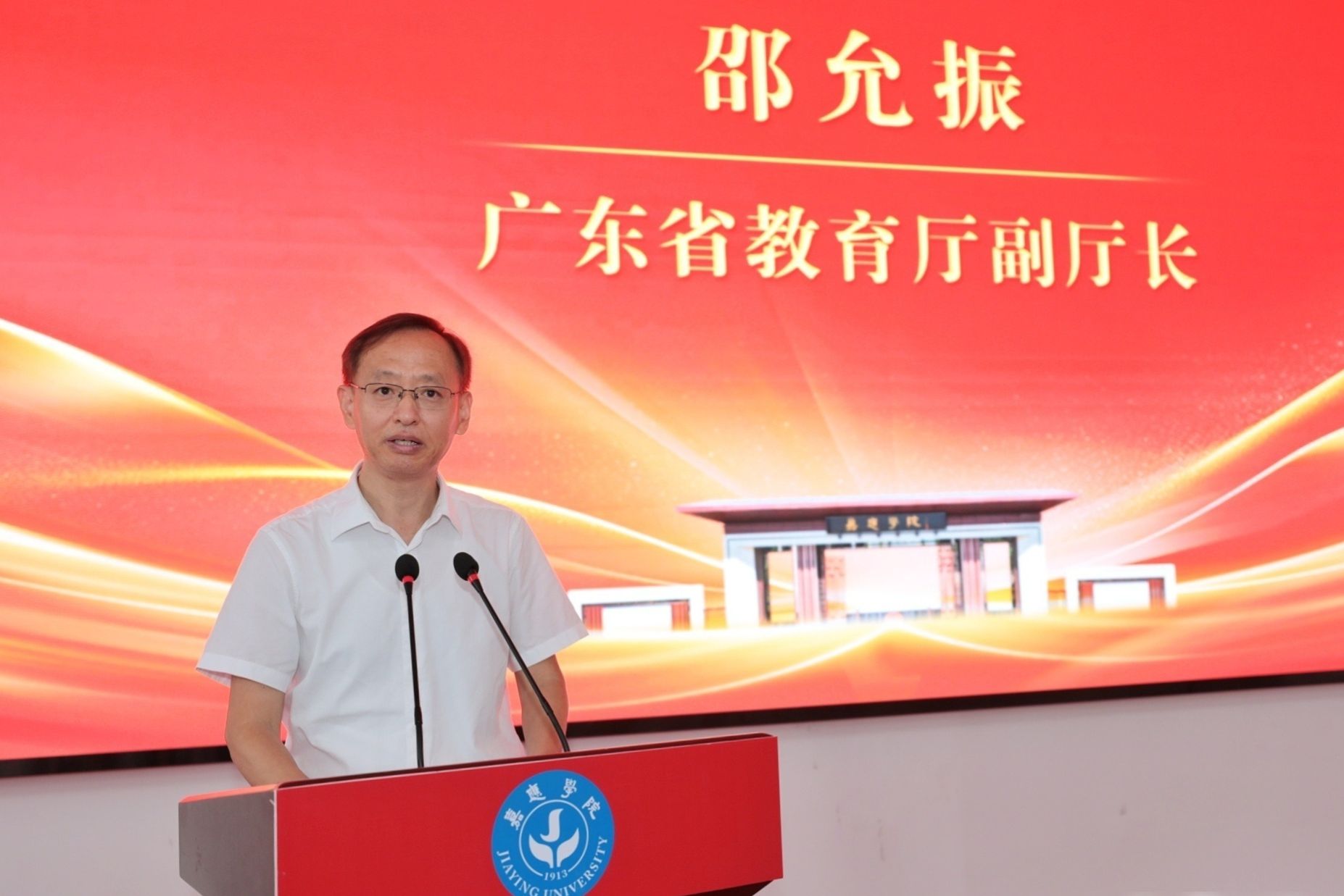 邵允振代表省委教育工委、省教育厅向嘉应学院丰顺校区(紫琳学院)的顺利启用表示热烈祝贺,并肯定了嘉应学院在服务区域教育中的积极作用。他提出,希望嘉应学院在未来办学日子里,坚守为党育人、为国育才的初心,全面贯彻党的教育方针,以高质量发展为主线,深化教育教学改革,立足地方发展实际和现实需要,扎根丰顺这片红色的沃土,优化学科专业布局,提高人才培养质量,充分发挥教育、科技、人才的优势,增强社会服务的质效,赋能地方经济社会高质量发展。