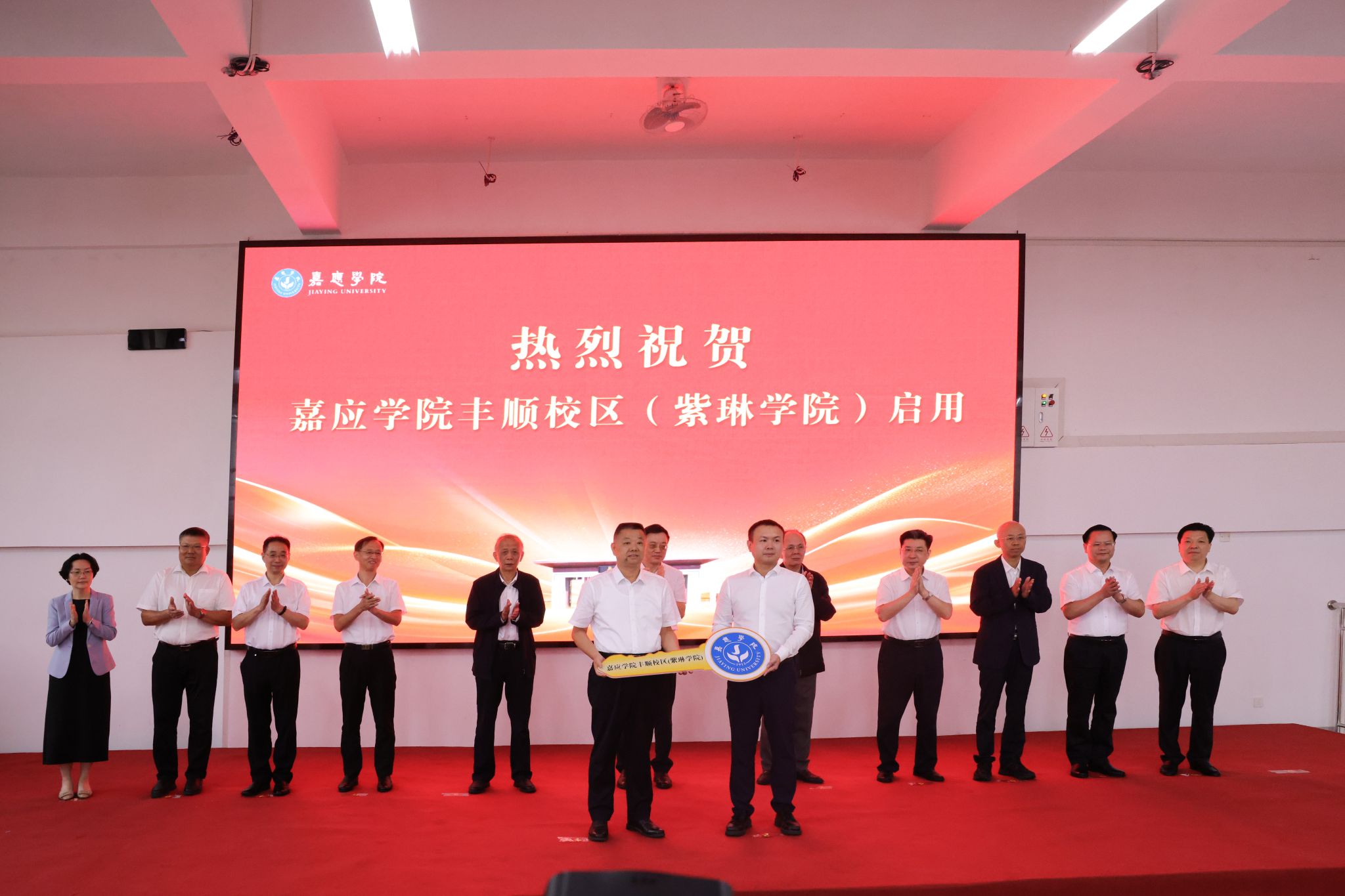 在领导嘉宾们的共同见证下,曹建忠与朱伟航完成校区交接仪式。与此同时,陈文海宣布:“嘉应学院丰顺校区(紫琳学院)正式启用!”话音刚落,现场响起雷鸣般的掌声,各位领导嘉宾共同在镜头前合影留念,将这一承载区域教育新希望的瞬间永久定格。
