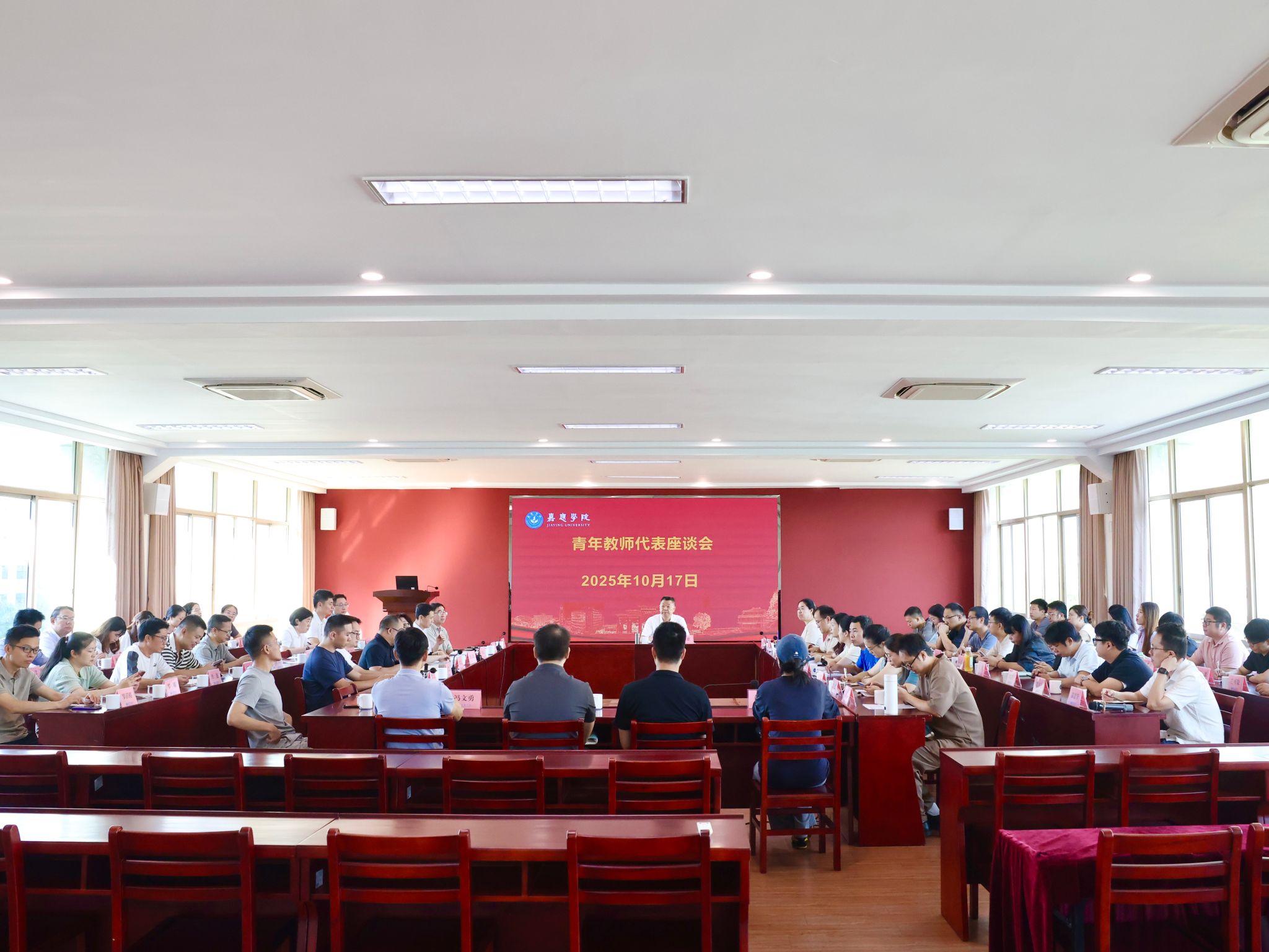 为倾听青年教师心声,凝聚学校发展共识,10月17日上午,我校在何侨生大楼526会议室召开青年教师代表座谈会,学校校长曹建忠,人力资源部、教务部、科研与社会服务部、发展规划部、财务部、资产设备管理部、总务后勤部等部门负责人,与46名青年教师代表面对面交流,共商学校发展良策。