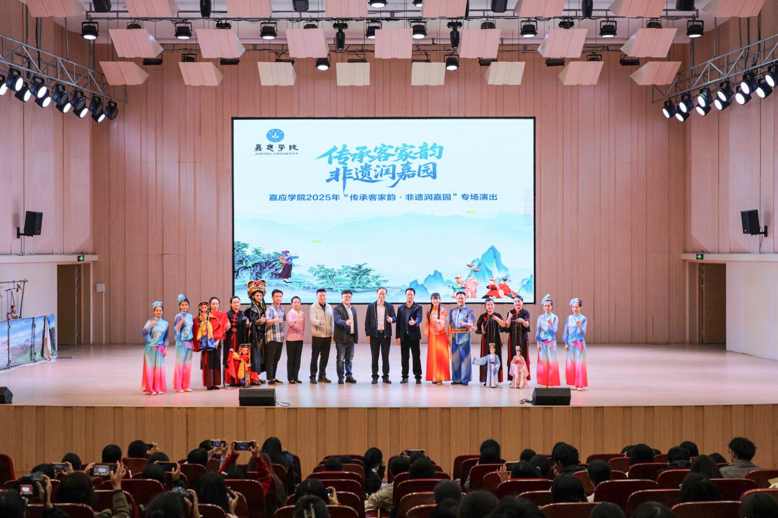 丝竹悠扬传客韵,非遗飘香润心田。12月6日至7日,我校联合梅州市梅县区山歌剧团在活活艺术中心音乐厅开展2025年“传承客家韵・非遗润嘉园”六场演出。学校副校长袁铎,教务部相关负责人和1700余名师生参加了活动。