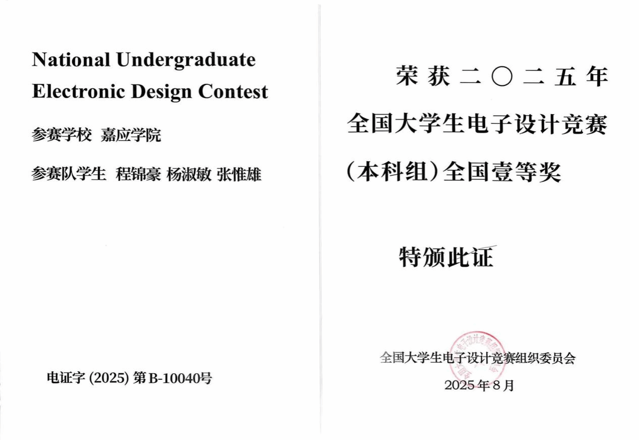 近日,广东省教育厅公布了2025 年全国大学生电子设计竞赛广东赛区获奖名单。我校物理与电子工程学院学子表现突出,首次荣获全国一等奖,取得历史性突破。