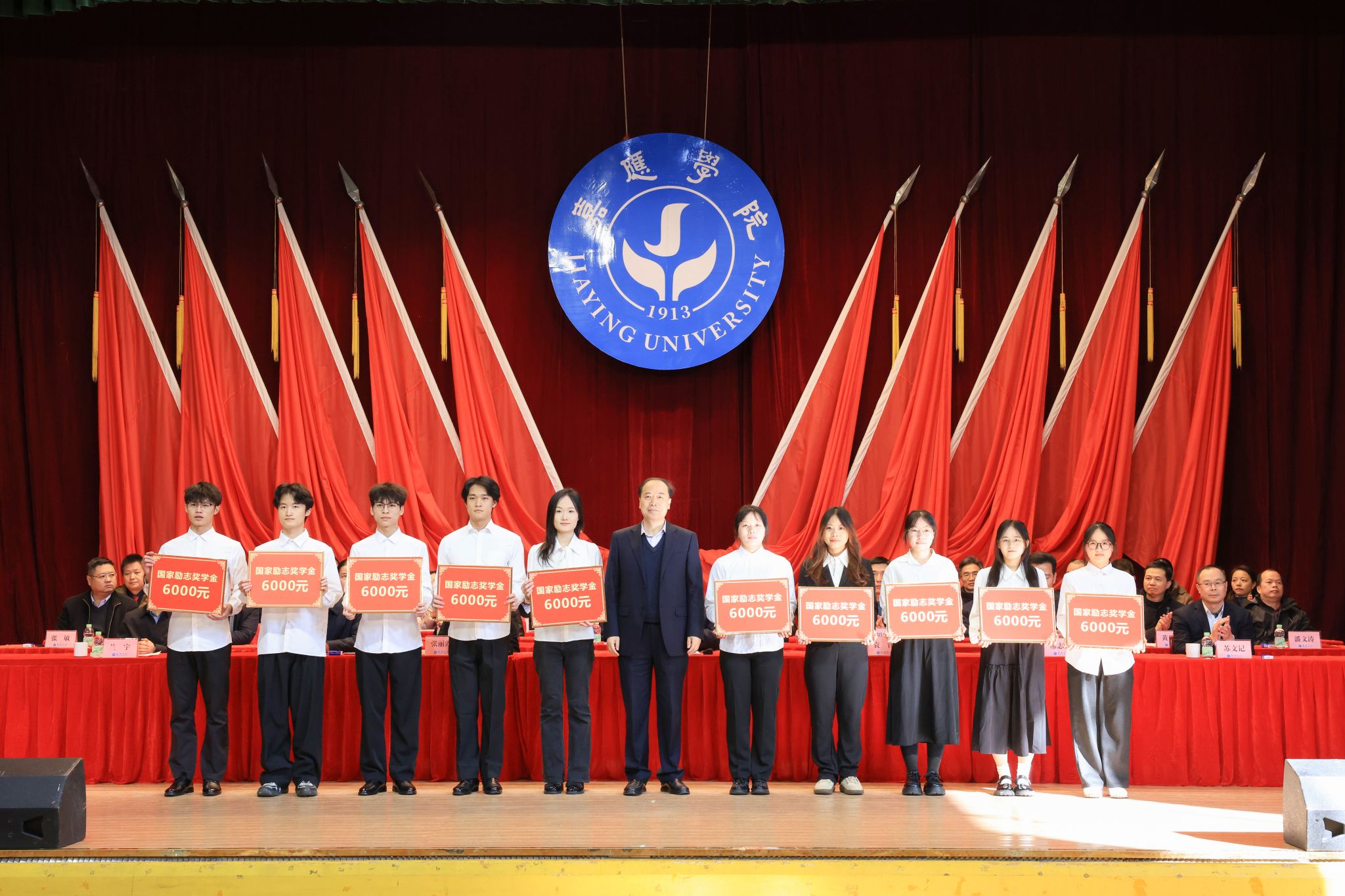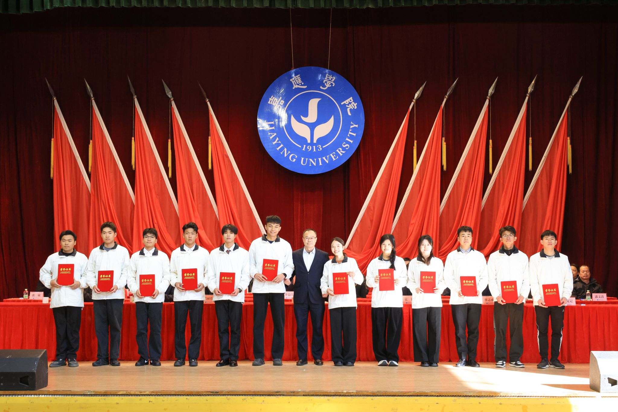 1月7日下午,我校在德龙会堂举行2025年度优秀学生表彰大会。学校副校长罗嘉文、袁铎、张丽霞、廖志成、陈建存,纪委书记苏文记,中山大学帮扶工作队队长兰宇,学生工作委员会全体成员,各二级学院党委副书记、辅导员、获表彰学生和学生代表共1000多人参加了大会。大会对过去一年在学术科研、学科竞赛、社会实践、志愿服务等方面表现突出的优秀学子进行了集中表彰,与会领导现场为获奖学生代表颁奖。罗嘉文总结讲话,袁铎宣读表彰决定,大会由张丽霞主持。