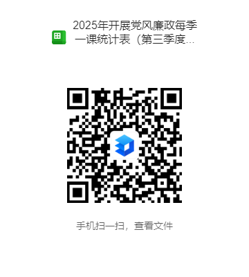 4.加强考核评价。“党风廉政每季一课”开展情况将作为各二级党组织履行党风廉政建设责任的观测点,纳入年终党建考核体系。每季一课开展情况不再提交纸质材料,扫描下面二维码填报即可。