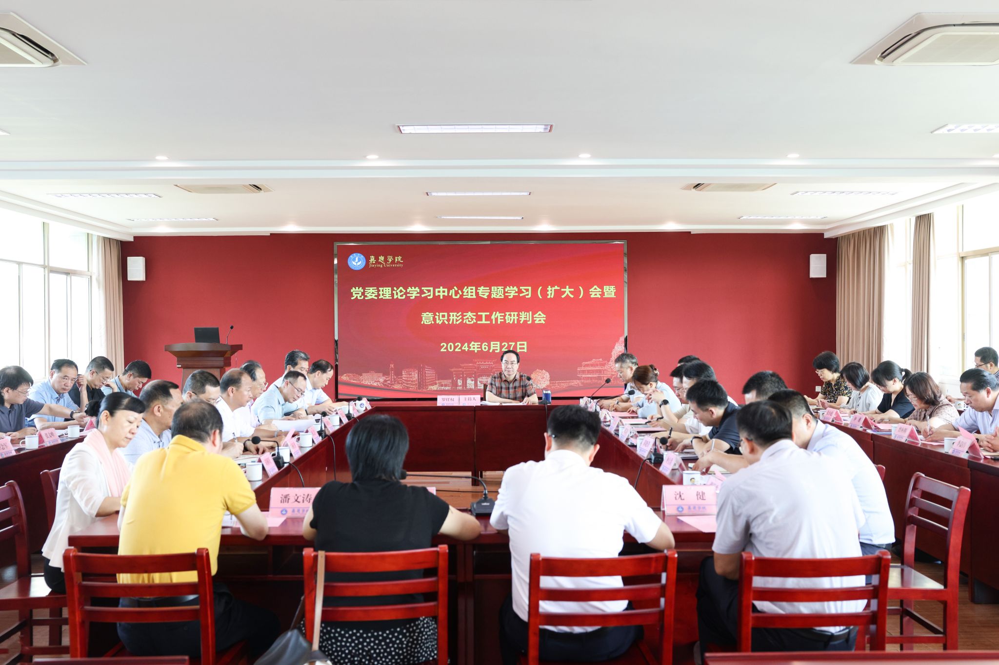 6月27日上午,我校在何侨生大楼526室举行“深化党纪学习教育,助推学校高质量发展”为主题的党委理论学习中心组专题学习(扩大)会。学校党委副书记罗任权主持并总结讲话,学校副校长罗嘉文作《学习贯彻习近平总书记关于推动高质量发展的重要论述》专题发言,副校长张丽霞作《学习贯彻习近平总书记关于深刻理解“两个结合”是我们取得成功的最大法宝》专题发言。学校领导,相关职能部门主要负责人,机关党委、各二级学院党委、各党总支(直属支部)书记参加了会议。