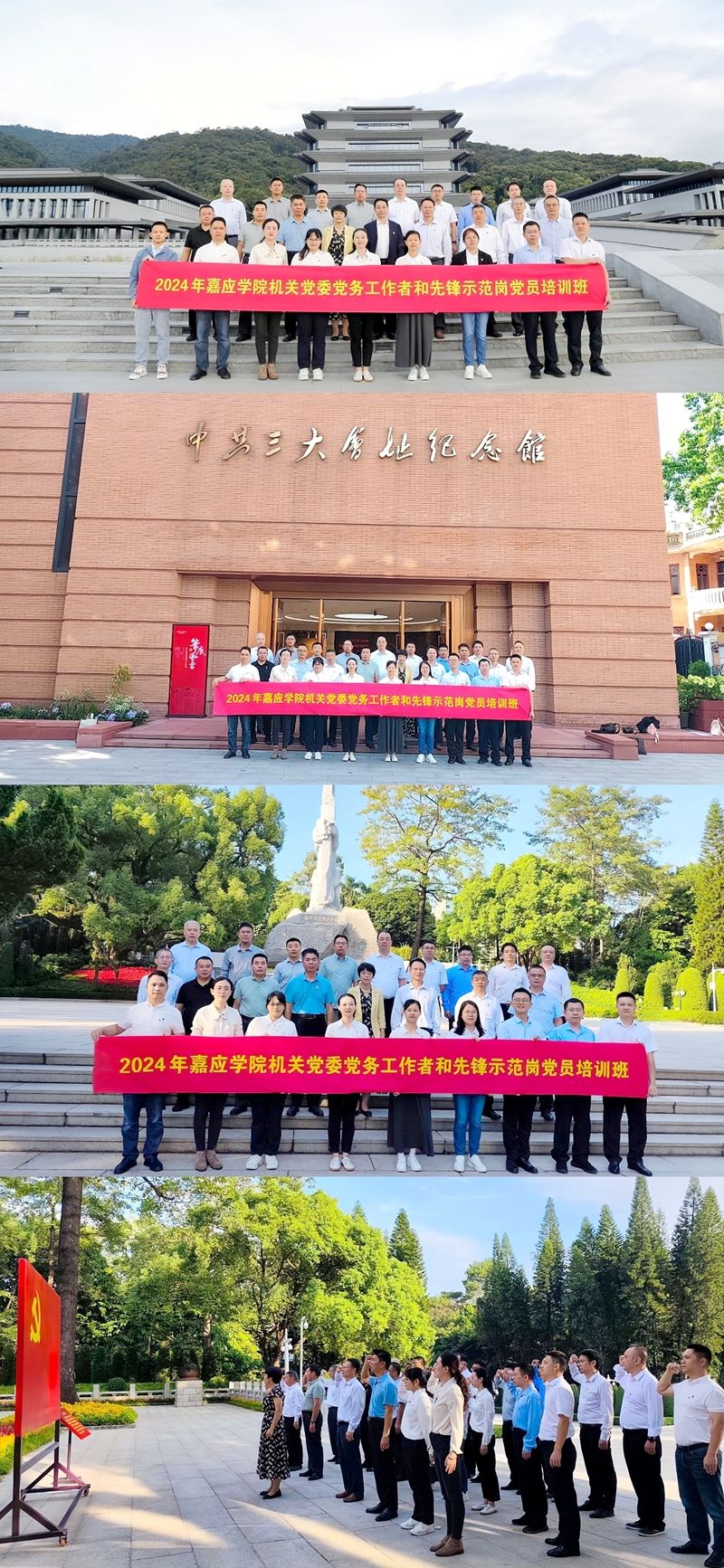 为深入学习贯彻党的二十届三中全会精神,弘扬中华优秀传统文化,筑牢理想信念根基,进一步提升机关党务工作者和先锋示范岗党员的政治素养和业务水平,切实发挥机关党支部战斗堡垒作用和机关党员先锋模范作用,10月24至26日,学校党委副书记、校长陈文海带领机关党务工作者和先锋示范岗党员近30人前往中国国家版本馆广州分馆、中共三大会址纪念馆、广州起义烈士陵园等展馆开展教育培训。
