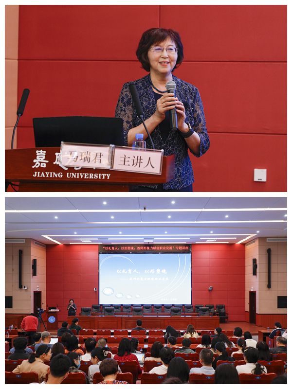 马瑞君以《以礼育人,以形塑魂:教师形象力赋能职业发展》为题进行了深入阐述。她结合教师职业实际,从三个方面分享了宝贵的经验:一是将礼仪修养视为教师职业发展的核心软实力;二是探讨了无声胜有声的形象塑造三维法则;三是讲述了如何通过礼仪在职场中实现从得体到卓越的转变。讲座内容丰富、形式多样,不仅包括现场互动示范和案例对比分析,还设置了情景模拟演示环节,营造了热烈的学习氛围。