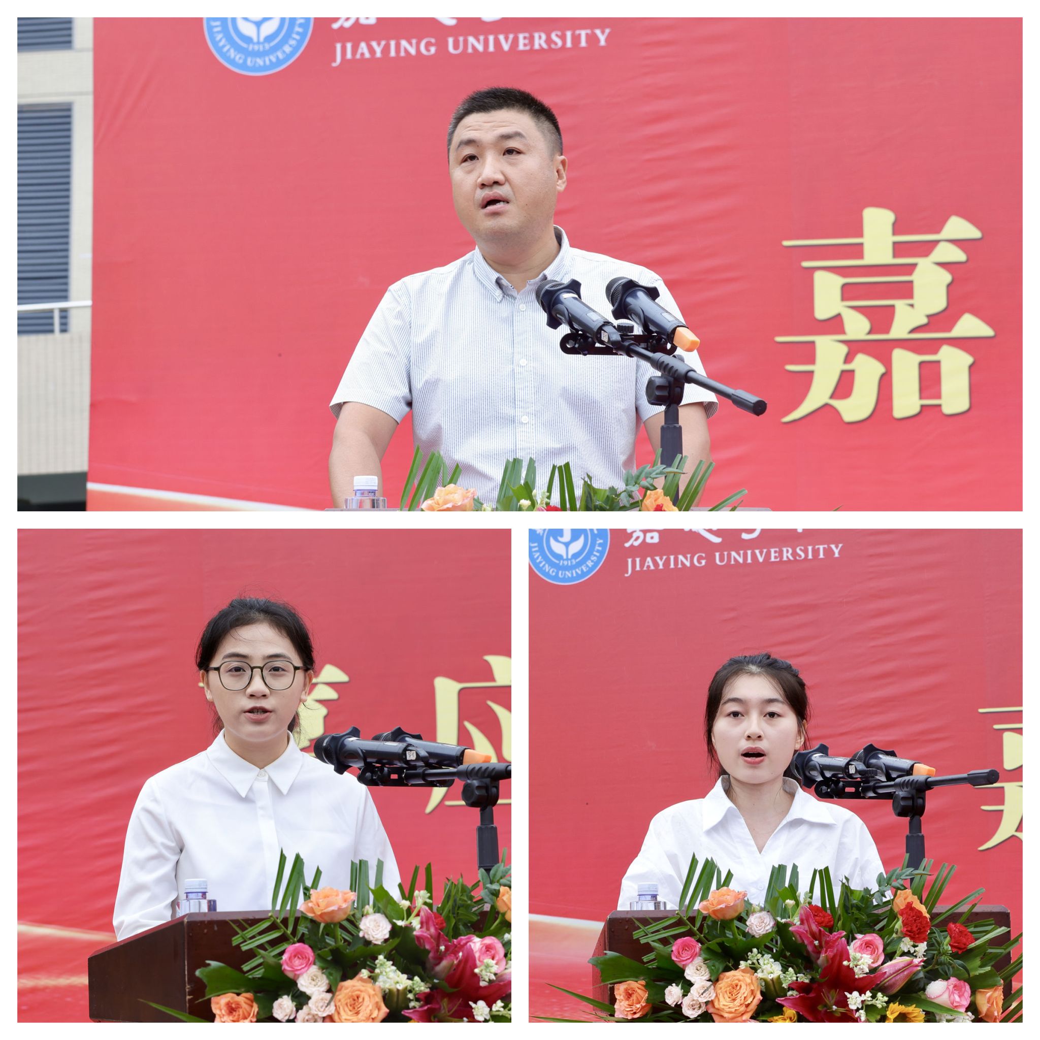 典礼上,学校教师代表美术学院宋雷教授、老生代表古金瑶、新生代表陈沐欢分别作热情洋溢的发言。最后,现场师生共同唱响《嘉应学院之歌》,开学典礼在慷慨激昂、催人奋进的歌声中圆满结束。