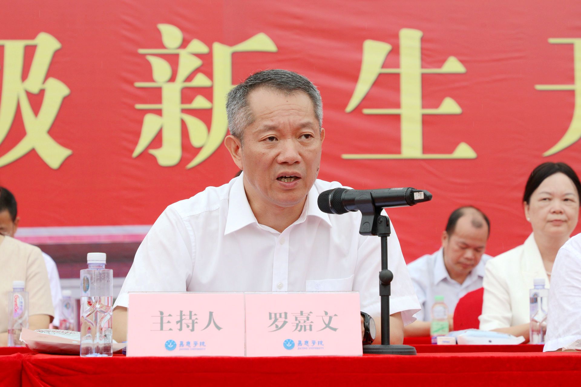 清风满校迎新季,少年启航向未来。9月9日上午,我校在丰顺校区行政楼前广场举行2025级新生开学典礼。学校校长曹建忠、副校长罗嘉文、纪委书记苏文记、中山大学帮扶工作队队长兰宇、相关职能部门负责人及二级学院党政负责人,丰顺校区辅导员,新生班主任以及2025 级丰顺校区全体新生参加会议。大会由罗嘉文主持。