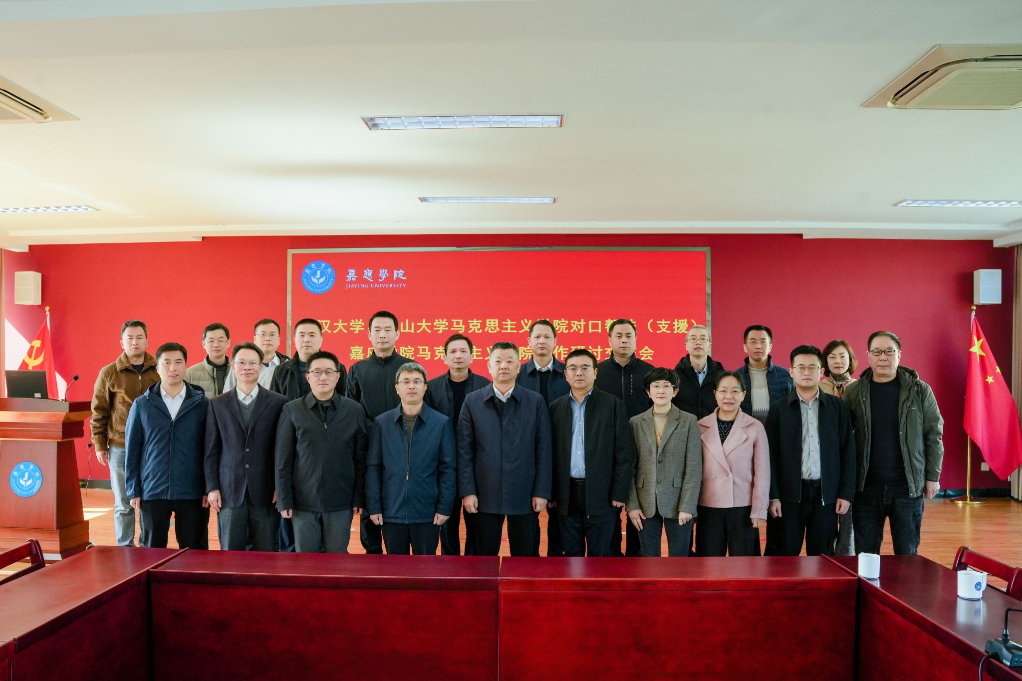 为深入推进武汉大学、中山大学马克思主义学院对我校马克思主义学院的对口帮扶(支援)工作,精准赋能学院学科建设与内涵发展,注入高质量发展强劲动力。1月10日上午,对口帮扶(支援)工作研讨交流会在何侨生大楼526会议室举行。学校校长曹建忠出席会议并致辞,武汉大学马克思主义学院院长罗永宽、中山大学马克思主义学院副院长童建军率两校专家团队莅临指导,梅州市委宣传部、梅州市商务局相关负责同志受邀参会。我校党政办公室、宣传部、发展规划部、科研与社会服务部,马克思主义学院党政班子成员及各教研室负责人等参加研讨交流。会议由中山大学帮扶队队长兰宇主持。