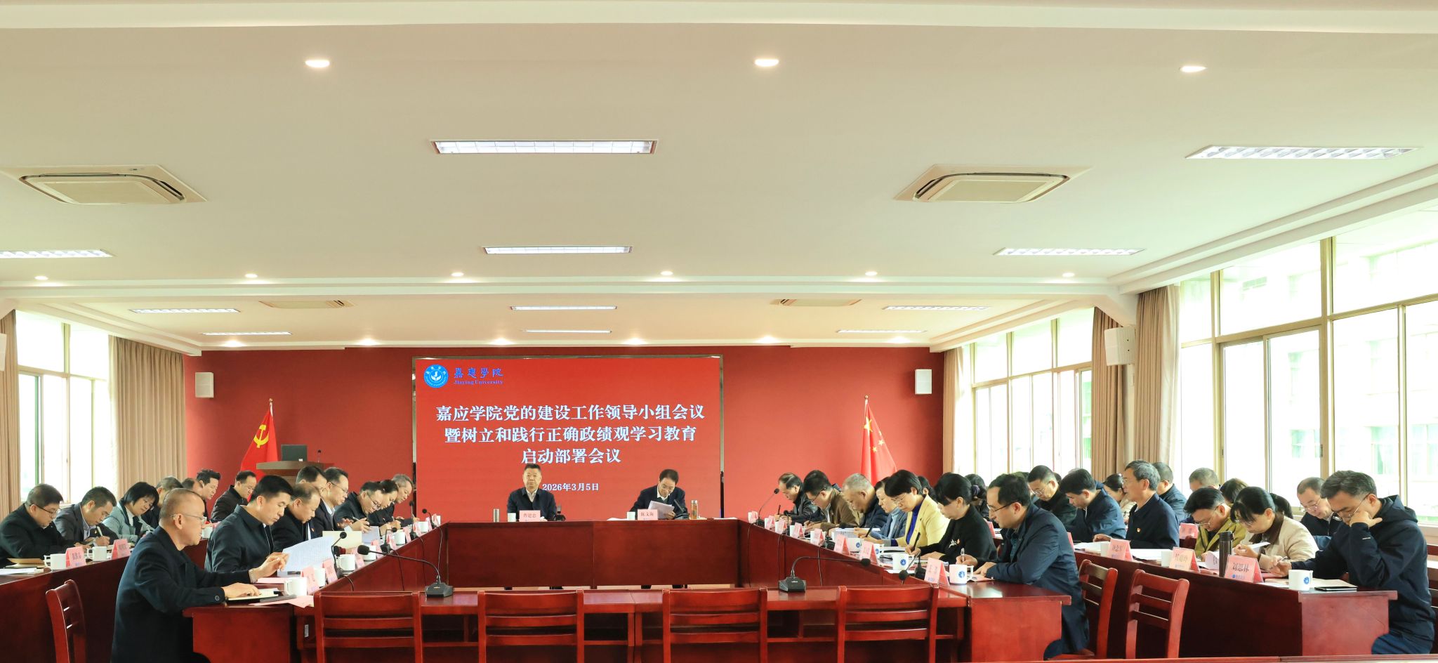 陈文海在动员部署讲话中强调,要坚决把思想和行动统一到党中央决策部署上来,严格对标对表,细化任务举措,强化责任落实,高质量完成各项重点任务,并就下一步工作提出三点要求。一要提高政治站位,深刻认识开展学习教育的重大意义。学校正处于“十五五”规划谋篇开局及实现内涵式发展的关键阶段,面临着硕士学位点建设、丰顺校区二期建设、学科专业布局、教育教学提升、高水平人才队伍建设、科研创新、全面深化改革等一系列重点任务。开展这次学习教育,就是要引导全体党员干部把政绩体现在落实立德树人根本任务上,体现在提升教育教学质量上,体现在服务国家战略和地方发展上,努力办好人民满意的教育。二要把握核心要义,高标准高质量推进学习教育。要按照“立党为公、为民造福、科学决策、真抓实干”总要求,精心组织实施,一体推进学查改,在深学、真查、实改上下功夫见成效。在深学细悟上下功夫,筑牢思想根基;在查摆问题上下功夫,深挖根源症结;在整改整治上下功夫,务求见底见效;在建章立制上下功夫,强化长效保障;在开门教育上下功夫,凝聚师生力量。三要加强组织领导,确保学习教育落地见效。要压实工作责任,学校党的建设工作领导小组抓好统筹协调,工作专班承担具体工作,各二级党组织及时对学习教育作出部署。要强化宣传引导,充分利用各类宣传阵地,营造浓厚学习教育氛围。要注重统筹兼顾,把开展学习教育同贯彻落实党中央及省委决策部署结合起来,同服务粤港澳大湾区建设和梅州苏区振兴发展结合起来,同学校“十五五”规划编制实施和年度重点工作结合起来,将正确政绩观要求贯穿于学校办学治校全过程各方面,把学习教育成果切实转化为学校高质量发展成效,为服务教育强国、教育强省建设贡献更多嘉应力量。