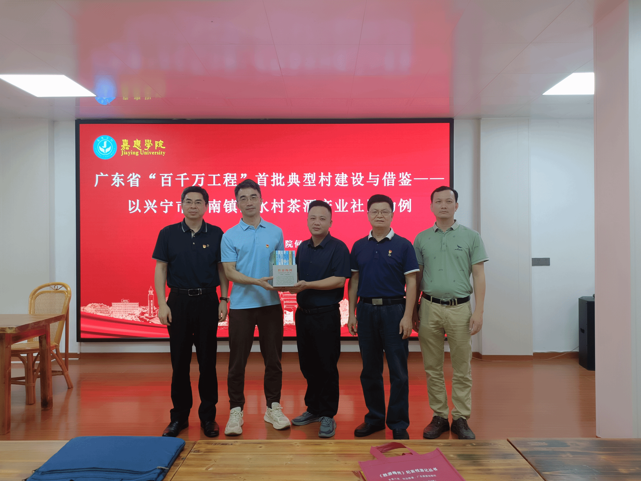 活动中,我校何日胜教授围绕“双百行动”开展了题为《广东省“百千万”工程首批典型村建设与借鉴—以兴宁市径南镇浊水村茶酒产业社区为例》的专题讲座,他结合工作实践,生动详细地讲述了浊水村在广东省“百千万”工程首批典型村建设过程中的经验和心得。在场的小胜镇党群干部以及师生代表进行了深入讨论和提问,取得了预期效果。学院还向小胜镇捐赠了何日胜撰写的《胜游梅州》系列丛书。