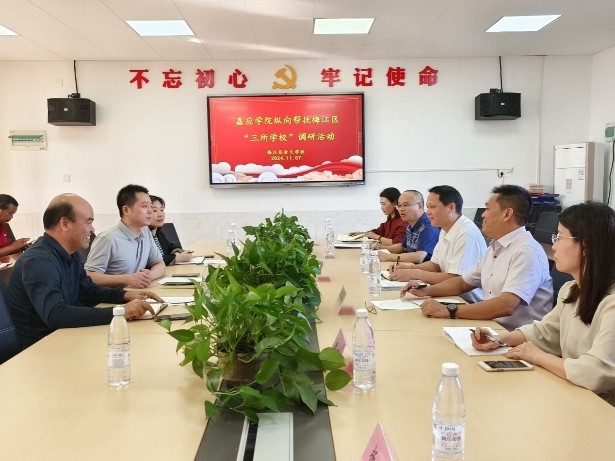 为贯彻落实《广东省“百县千镇万村高质量发展工程”教育行动方案(2023—2027 年)》,深入实施《广东省师范(教师教育)院校纵向帮扶欠发达地区“三所学校”和县中质量提升工作方案(2024-2027年)》,加快推进梅江区“三所学校”纵向帮扶工作,11月7日,外国语学院党委书记李益昌、执行院长何家驹率“纵向帮扶”工作队成员一行6人赴梅江区城北镇开展专题调研。