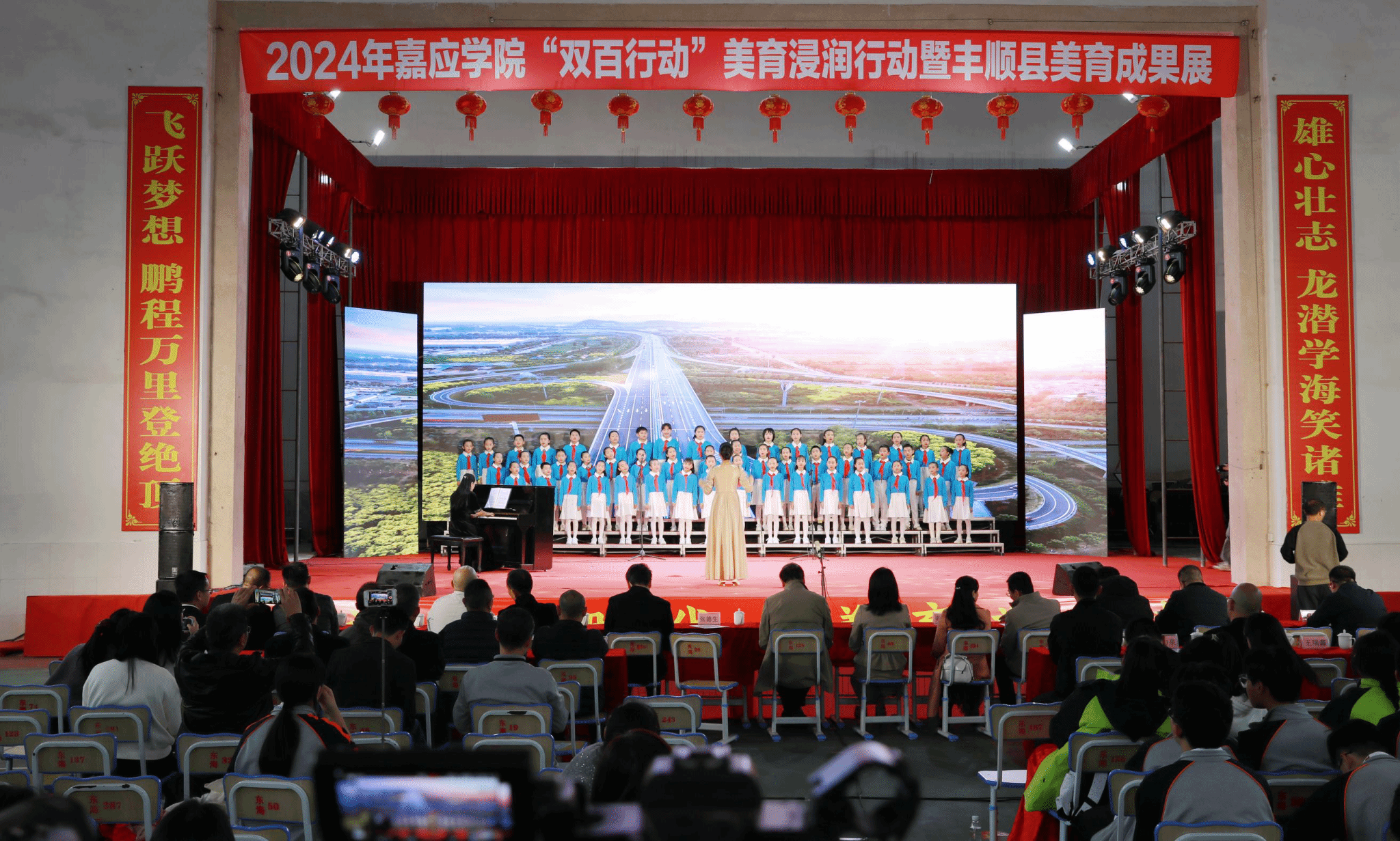 此次成果展是我校在丰顺县“双百行动”工作和美育浸润行动的成果体现,也是丰顺县美育教育的一次集中展示。从器乐合奏《客家汉乐大锣鼓》到舞蹈《盛世欢腾》,从朗诵《四季诗韵》到合唱《十送红军》,每一场表演都充满了激情与活力,展现了学生们的艺术才华和对美的追求。活动的成功举办标志着校地合作在美育领域开启了新的篇章,也为学生们的全面发展打下了坚实的基础。