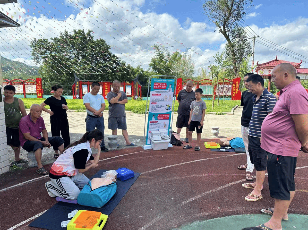 在医疗健康服务方面,各实践队充分发挥专业优势。“护你平安·健康下乡”团队在梅县区畲江镇开展义诊,为村民提供血压、血糖检测及中医按摩服务;“救在身边”急救宣讲团在丰顺县龙岗镇通过情景模拟教学,普及CPR和海姆立克急救法,受到当地政府高度认可。此外,实践队还结合乡村振兴需求,开展多样化服务。“客味薪传·青创印记”团队走访非遗传承人,整理客家美食文化档案;“无毒无诈,平安同行”普法宣讲团在兴宁市宁新街道开展防溺水、禁毒宣传;“医路童行·客家情暖”服务队在梅江区龙丰村为留守儿童开设健康安全课程,以客家童谣等生动形式传授卫生知识。