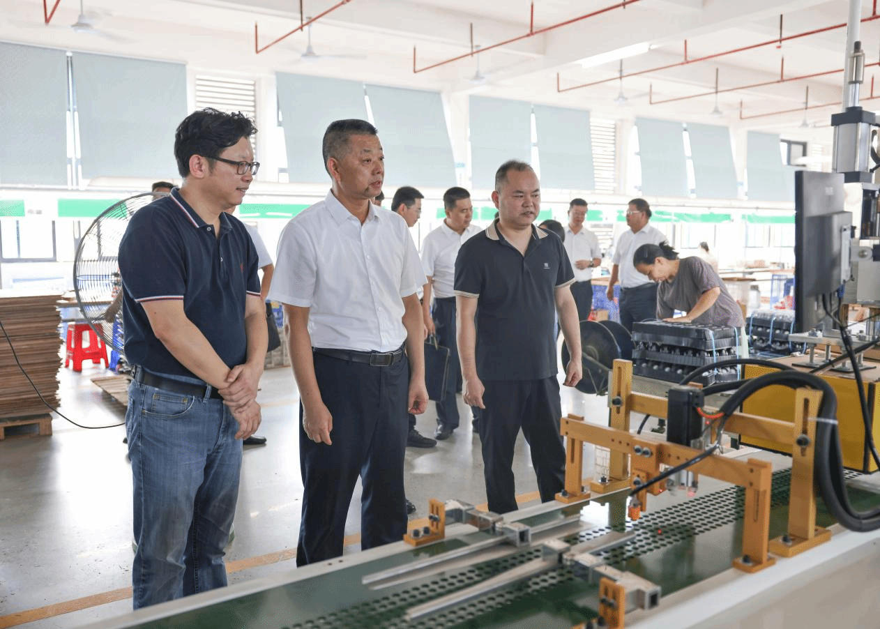 曹建忠一行首先前往丰顺产业园区,实地走访广东飞浦声科技及梅州市铭海车业两家企业,调研学校“双百行动”合作共建项目《打火机全自动装配系统》《电声产业数字化转型升级》推进落实情况,深入车间现场考察学校科研团队研发的技术装备在实际生产中的应用效果、运行效率等,随后在丰顺产业园区管委会听取相关负责人关于丰顺产业园区发展与规划的情况介绍,并召开座谈会。