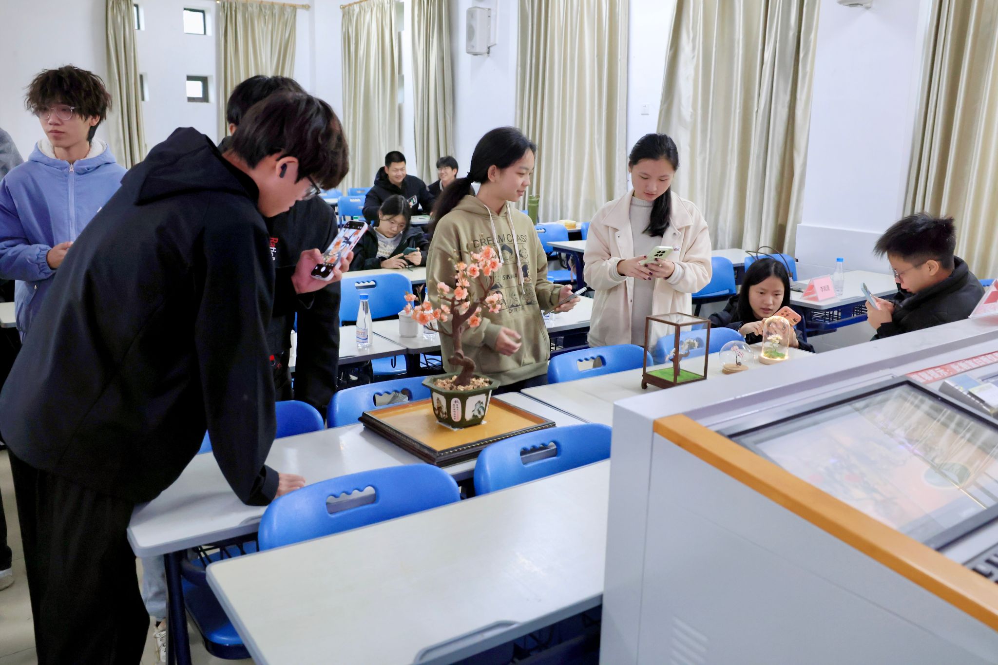 活动主要分为非遗讲座、实践体验与交流研讨三个环节。丰顺县非物质文化遗产保护中心陈泱仪主任作了题为“融入现代生活—非遗正青春”的讲座,系统介绍了丰顺县非物质文化遗产保护与推广的成效,并着重讲解了国家级非物质文化遗产项目“埔寨火龙”的历史渊源、表演形式和文化内涵。埔寨纸花技艺传承人张伟林现场讲解了纸花的民俗寓意和制作工艺,并指导学生进行实践操作,让同学们在亲身体验中直观感受非遗技艺的独特魅力。
